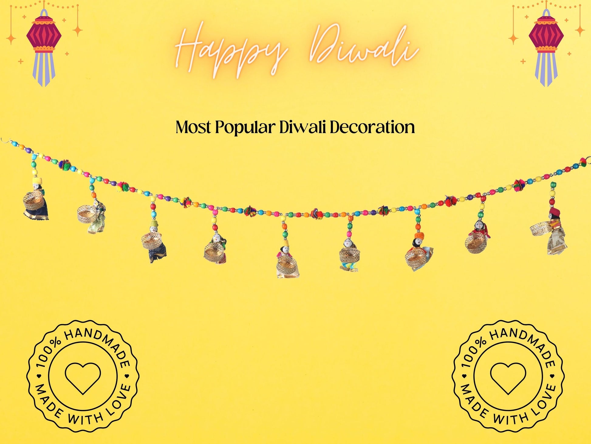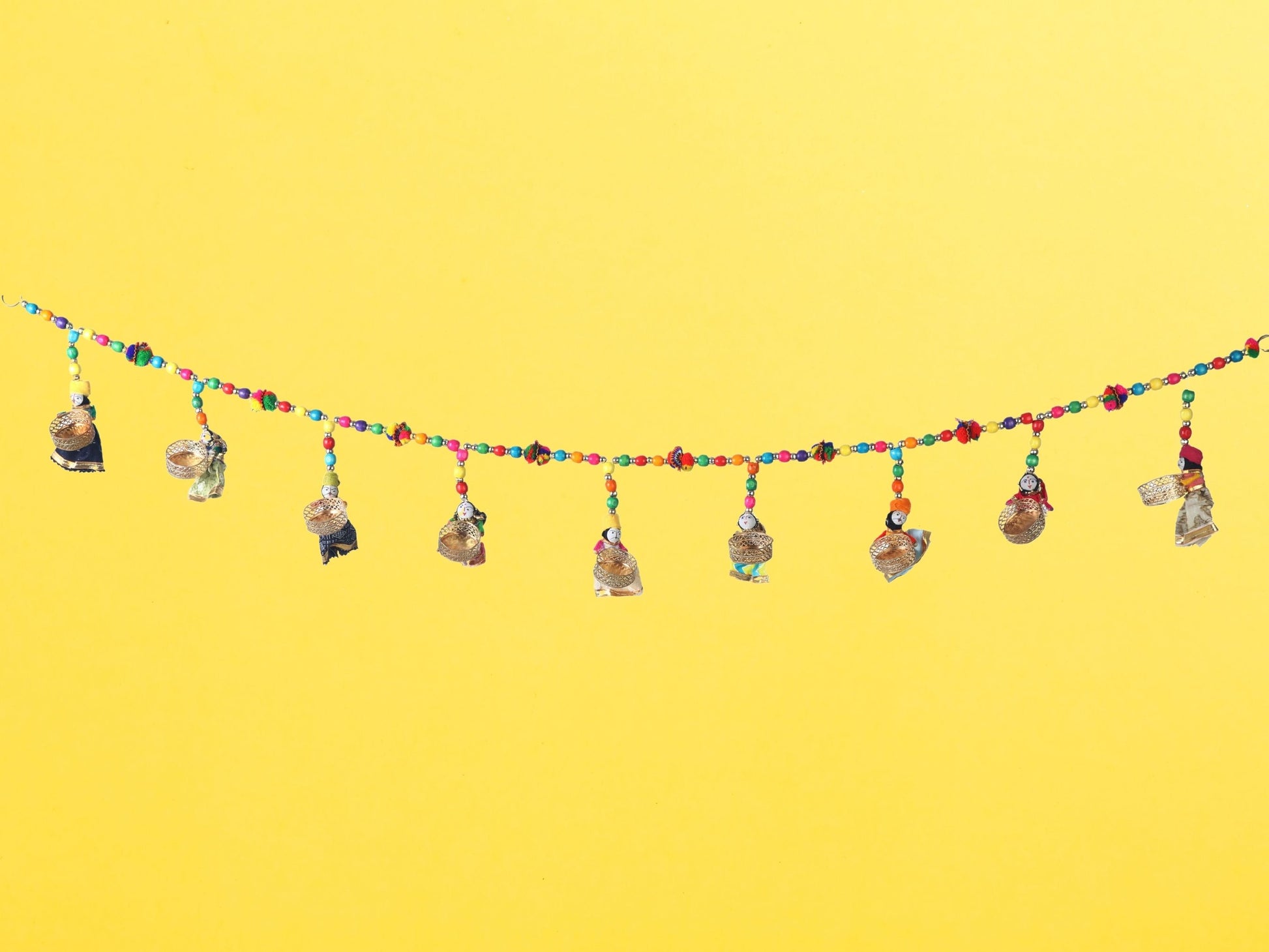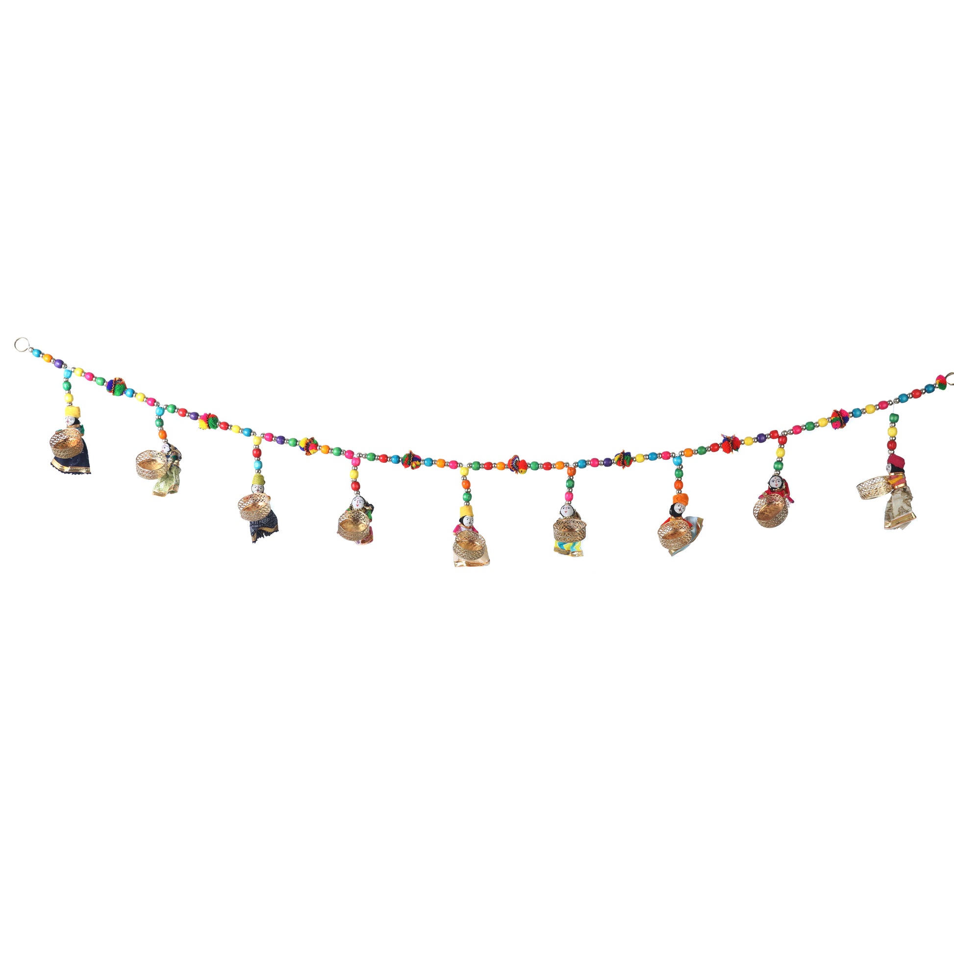 Crafted with meticulous attention to detail, this bandarwal boasts intricate puppet motifs adorned with vibrant colors and embellishments. Each element exudes whimsy and grace, creating a captivating visual display that adds a touch of warmth and joy to your decor.